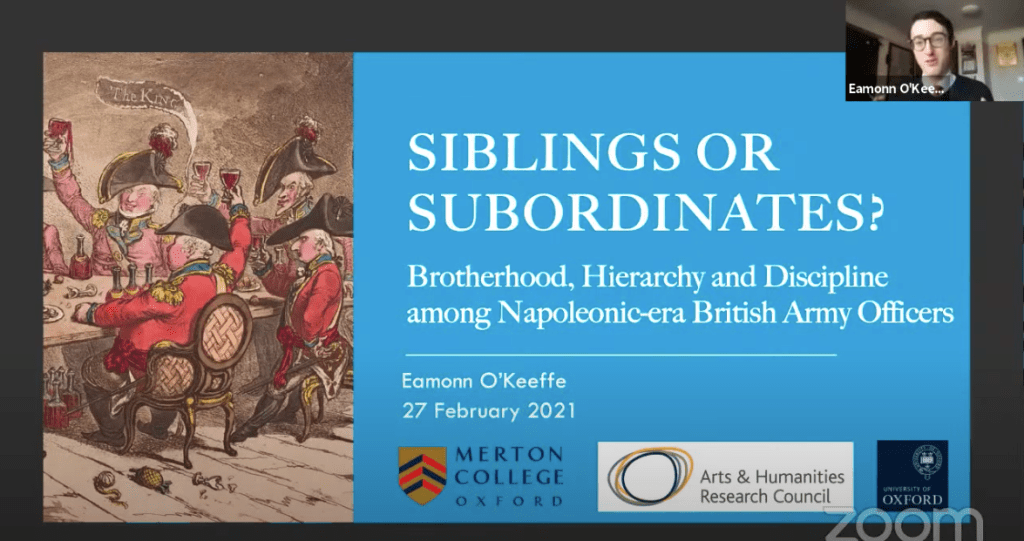 On Saturday 27 February I gave a presentation as part of the Heritage Days 2021 History Symposium. For those unable to attend the (virtual) proceedings, a recording of my talk, which explores honour, hierarchy and discipline among British army officers during the era of the Napoleonic Wars, is now available on YouTube.