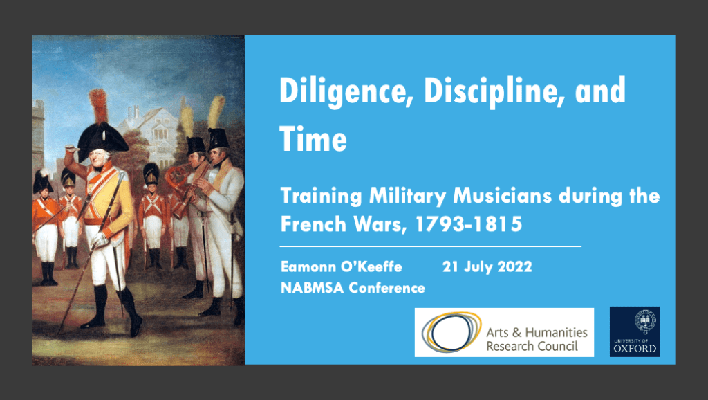 The judges made the following kind comments about my presentation, which was entitled ‘Diligence, Discipline, and Time: Training Military Musicians during the French Revolutionary and Napoleonic Wars’ and was based on material from one of my thesis chapters.