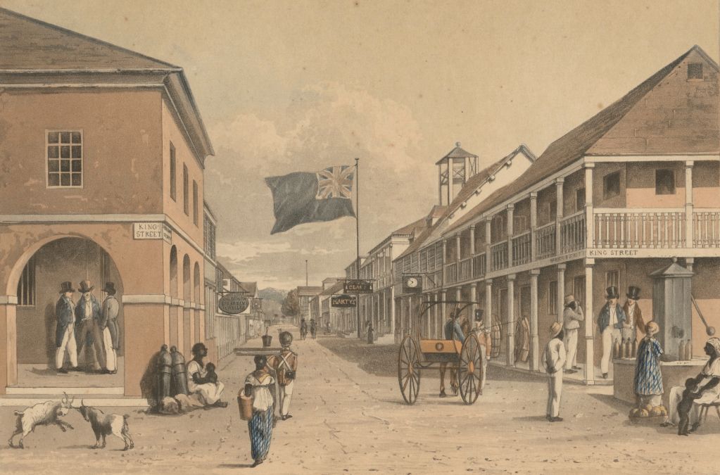 Harbour Street, Kingston, Jamaica, in the early 1820s (ASK Brown Collection)