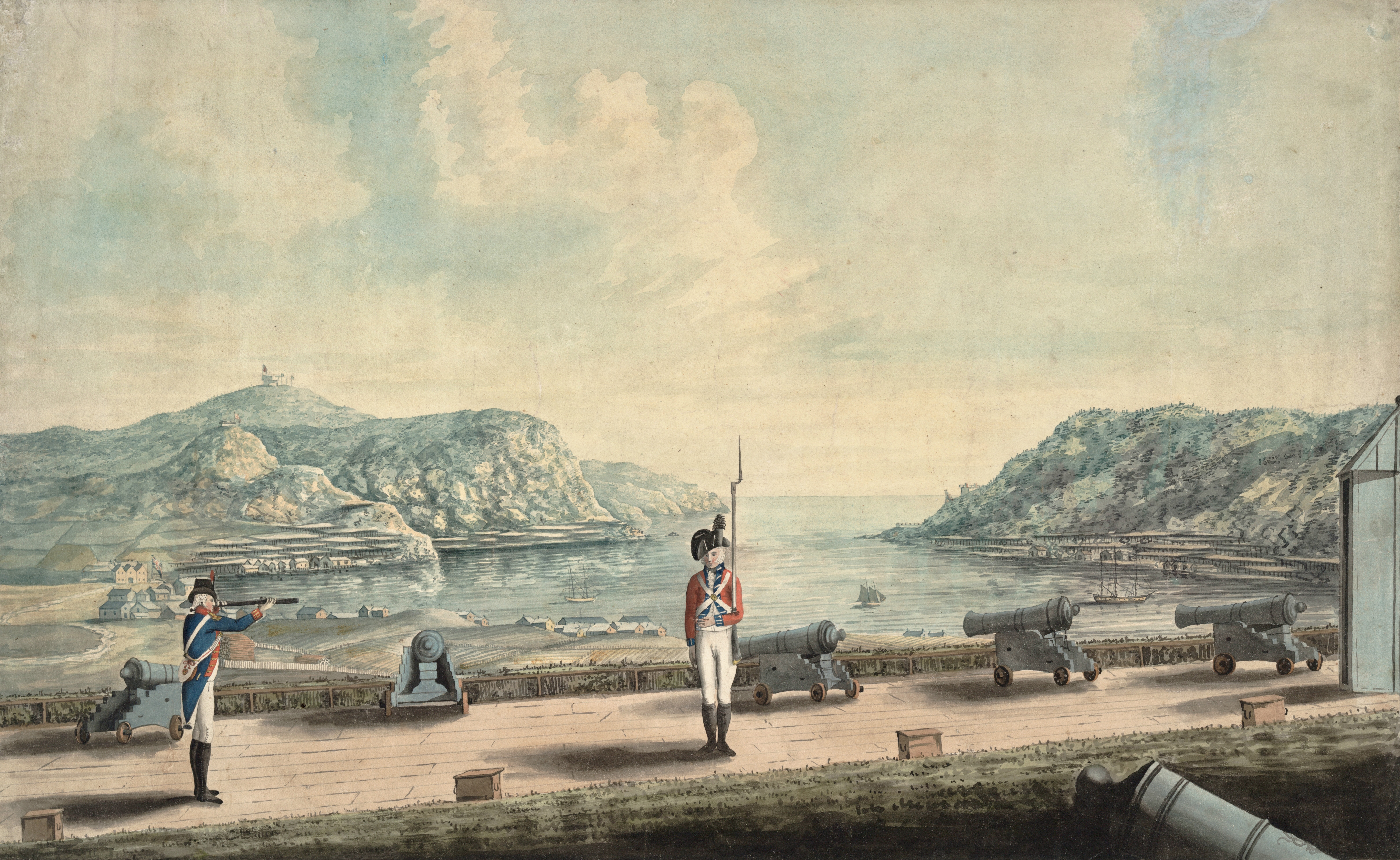 To mark the move, I wanted to share something that connects directly to both the place and the period: a watercolour of St. John’s painted around 1796 by a Royal Artillery officer named George Bulteel Fisher. This beguiling view from Fort Townshend also depicts an artilleryman and a soldier of the Royal Newfoundland Regiment. Currently housed in the Anne S.K. Brown Military Collection at Brown University, the artwork was the subject of an informative 2022 article by the late historian René Chartrand.